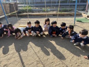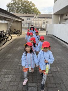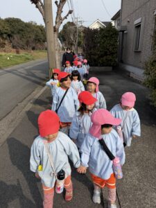 道路を歩く時は、お友達としっかり手を繋いで、車に気をつけながら道路の端を綺麗な一列で歩くことができるようになり、すっかり頼もしいきりん組さんです。