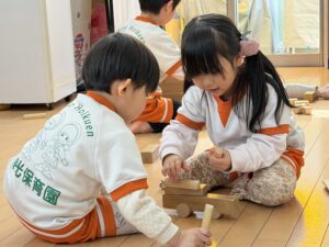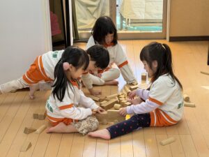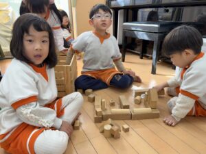 ただ一人で遊ぶだけでなく、お友達としっかりコミュニケーションを取りながら一緒に遊びを発展させることができるようになり、きりん組さんの立派な姿に私たちもとても嬉しくなりました。