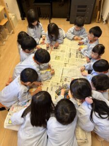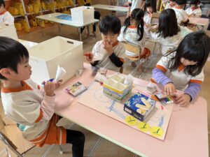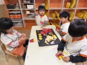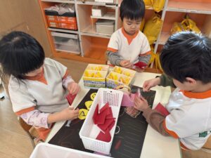 • 🧸おもちゃ屋さん:キラキラの折り紙などを丁寧に折って、かっこいい&可愛いアイテムを製作中!