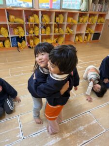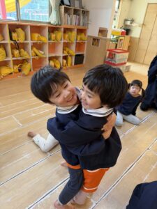 最後は、お友達同士で「元気でね!」「またね!」と言いながら、力いっぱいギュ~ッとハグ!!満面の笑みで抱きしめ合う姿に、私たち保育者も胸が熱くなりました。