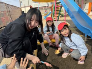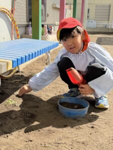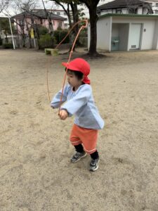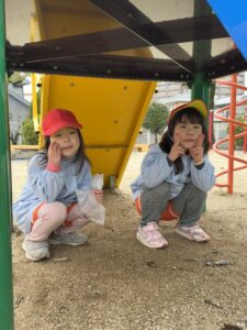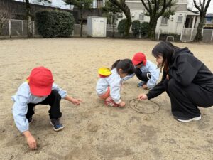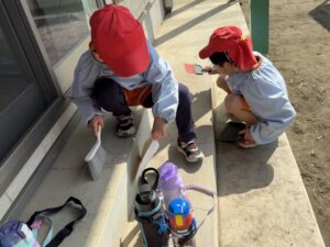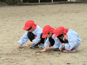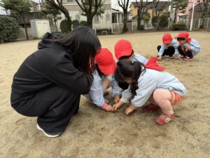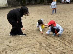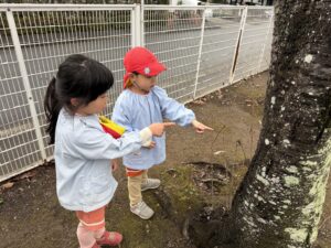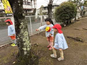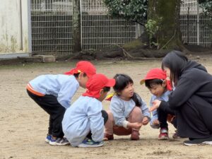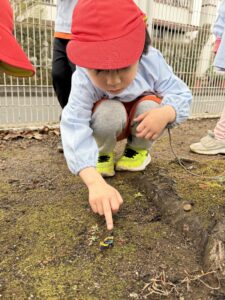 公園では、かけっこや大縄跳びに挑戦して元気いっぱいに体を動かしました。春の自然探しも大盛り上がりで、茂みを探検したり、木の幹をじっくり観察したり。「見て見て!綺麗な虫がいたよ!」と、目を輝かせながら自然の不思議に触れていました。