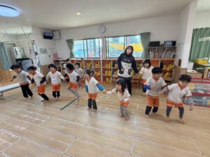 今年度最後のブログは、3月第4、5週目の元気いっぱいなきりん組さんの様子をお届けします。