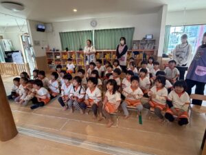 音楽に合わせて手拍子をしたり、お友達と手を繋いでピョンピョンとジャンプしたりと大盛り上がりです。お鼻をツンと触りながら体の部位を韓国語で言ってみたり、みんなで小さくしゃがんだり、両手を高く挙げて背伸びをしたり。全身を使って楽しく異文化に触れる子どもたちの、弾けるような笑顔がたくさん見られました!