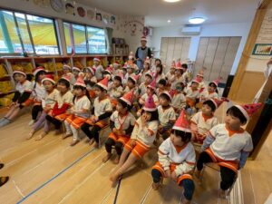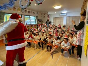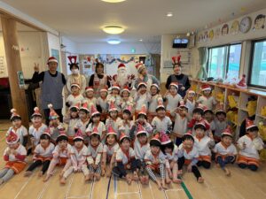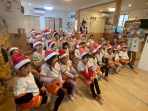 歌ったり 踊ったり 先生たちの楽しい出し物を見たり、そして保育園にサンタさんと一緒に楽しい時間をすごしました