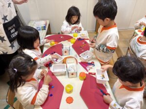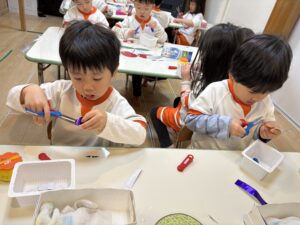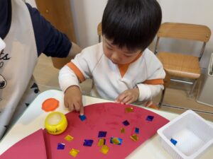 子どもたちが大好きなキラキラした折り紙から、好きな色を3色選びました。