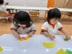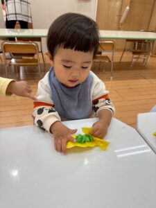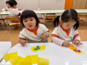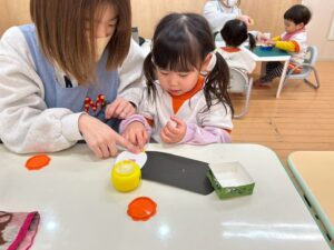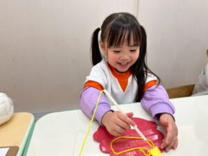 私たちはやっぱりこの色にする🩷ちゃんと好きな色を丸めて鬼さん、完成です👏