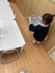 朝の会や帰りの会の後、自分の椅子をテーブルに持っていきます😊
