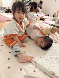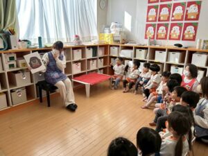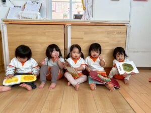 給食後の絵本の時間、自然と集まったあひる組さん、うふふ🤭いいね💕
