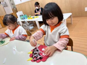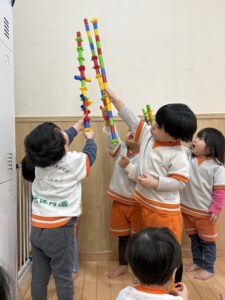 とっても寒い1週間でしたが、じっくり製作に取り組んだり、いろいろな遊びを楽しみました🥰進級にむけて、少しずつ『やってみたら、できた、楽しい』をいっぱい応援していきたいです。