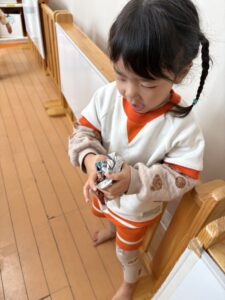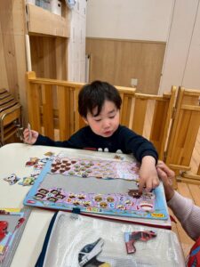 ⭐️朝、自分のシール帳にシールを貼る練習始めました。(りす組)🎈