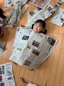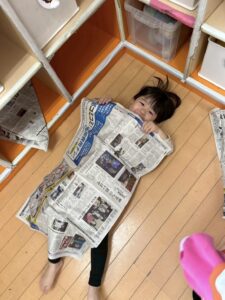 新聞紙で遊んでみました。広げたり、折ってみたり、自由自在です💕