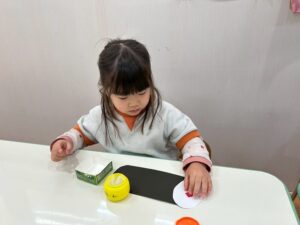 自分ののりを使って、くるくる、ぺたっ😊