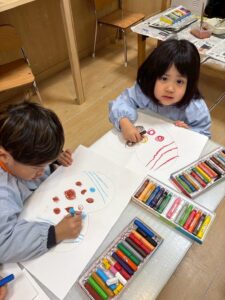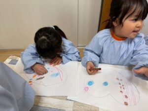 チョコに何をトッピングしようか、お話が弾みながらお絵描きしています!