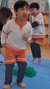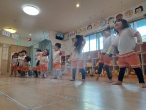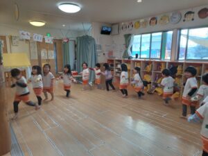 一列に並んで、お部屋の中をぐるっと、お散歩からのスタートです🎵