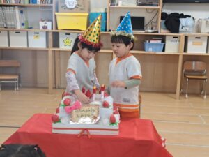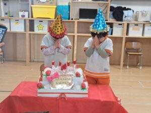 うさぎ組からは、また一人、四歳のお兄さんになりました🎵お友だちのことが大好きで、恐竜に変身するのがとっても上手な男の子です!これからもすくすくおおきくなってね♡