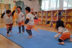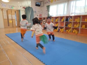 こどもたちも楽しんでくれていましたが、逃げるも追うもあまりの真剣ぶりと、それぞれの個性がよく見えて、私たち保育士もずっと笑いがとまりませんでした😆