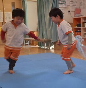 体幹が強い最強のお友だちも発見!!勝つ喜び、負ける悔しさも味わい、ルールを守って遊ぶことで、トラブルなく楽しく遊ぶことができました!