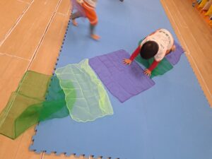 次は、サメゲーム!サメに食べられないように島(マット)に逃げられるかな~!