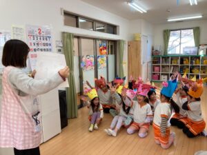 節分クイズをして節分がなぜあるのか、鬼の苦手なものはなにかなど、節分についてしりました。