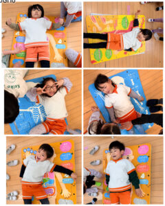 実際に完成したパズルの上に寝転んでここがこうなってるのか~と学んでいた子ども達でした!