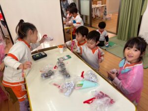 なんでもやさんにマクドナルド、おにぎりやさんとしなこちゃんやさん、広告・宣伝係と自分でなりたいものを決めて取り組んでいました。