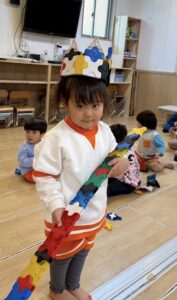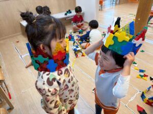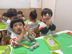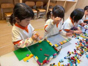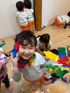 1人で黙々と集中して取り組んだり、お友達と楽しく協力しながら取り組んだり、ひとつの活動を色んな方法で楽しむみんなでした。
