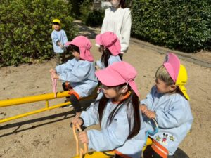 みんなで乗って上手に”ギッコンバッタン”漕ぐことが出来ました。