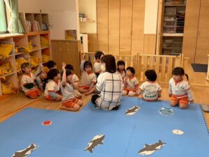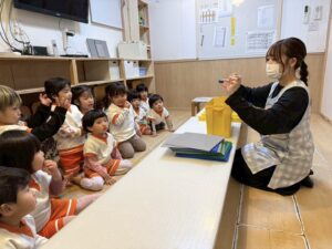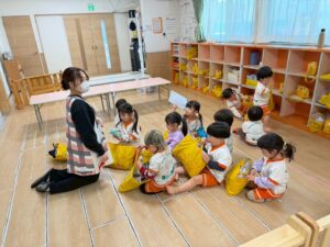 お話を聞くのがとっても上手なうさぎ組さん。真剣に聞いています。