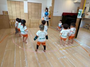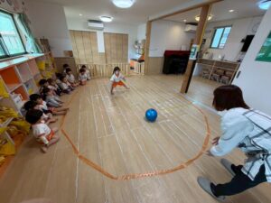 うさぎ組さんになり広いお部屋で室内遊びをしました。