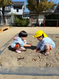 砂場で遊んだり