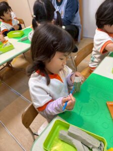 自分のお道具箱から粘土を取り出します。