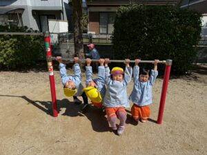 鉄棒にぶら下がったり