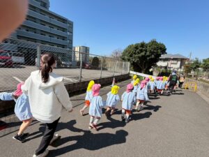 ウサギ組さんと手をつないでお散歩に行きました😊   最後までしっかりと手を繋いでいて兄さん・お姉さんになっていて素敵でした💖