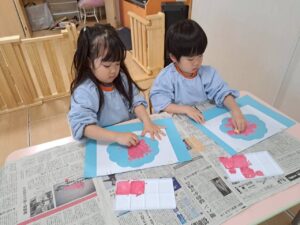 スタンプでポンポンポーン♬ たくさんお花を咲かせてね~