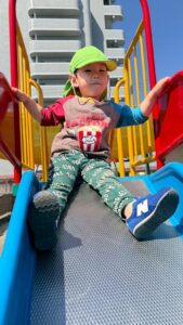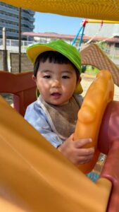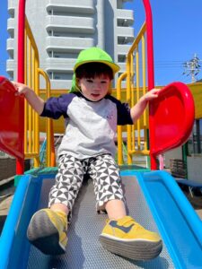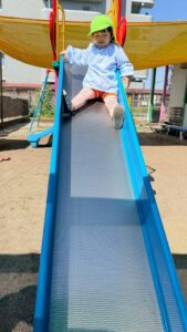 滑り台も「しゅ~っ」上手に滑ります。