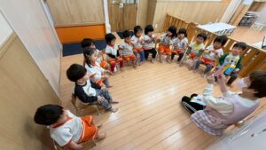 今週からは、あひる組さんと一緒に朝の会をしています。
