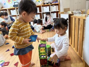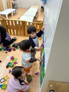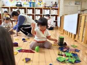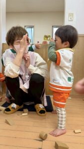 少しずつお友だちと遊んだりなど、お友だちとの関わりも見られるようになってきました!