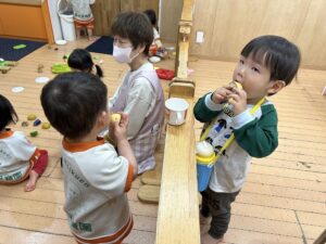 少しずつ言葉での伝え方を学んでいるりす組さんです!