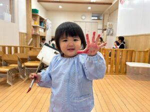 「見て~おててについたよ~✋」