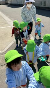 みんなで「1,2 1,2♪」お散歩ロープを持って歩きます。