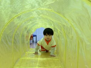 今回はスロープとトランポリンと、トンネルを出しました♪