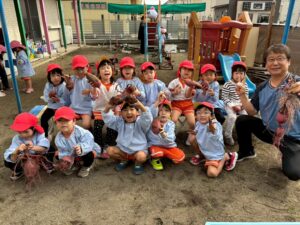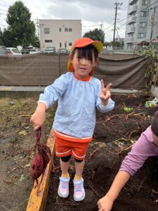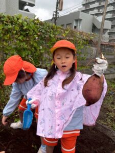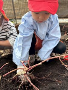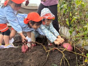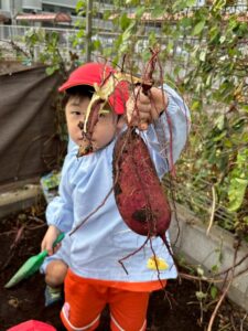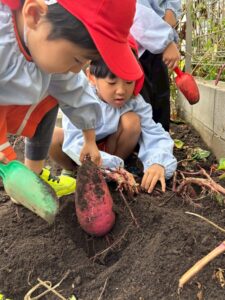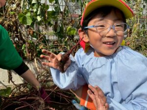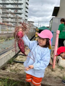 きりん組さんは次の日、芋掘りをしました☀️大きなサツマイモを見つけて大喜び!お友達と力を合わせて堀りました。みんなの笑顔が溢れていました♡