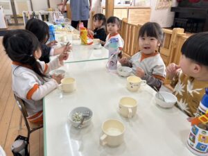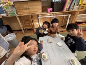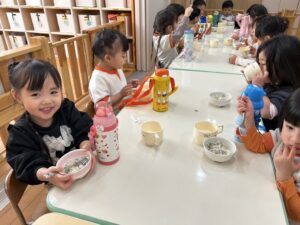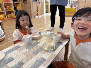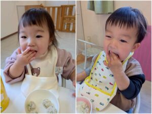 「これがスズナかな?スズシロかな?」「おいしい!」とたくさん食べてくれました🍙