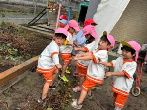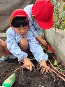つるはあらかじめ切ってあったので、子どもたちは土の中のお芋探し☺️