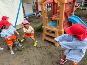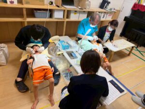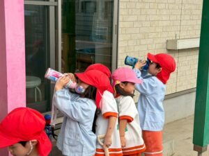 「火事だー!」の声に飛び起きる子もいれば、なかなか起きてくれない子もいて、「起きて起きて!」と起こすと寝ぼけ顔でも逃げようとしてくれて、無事に全員避難することができました😊
