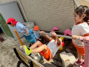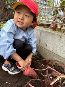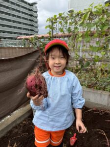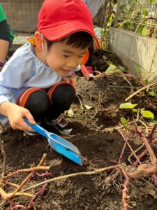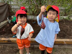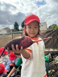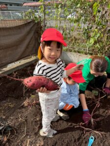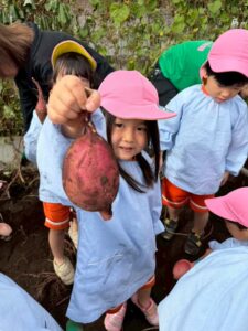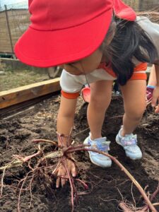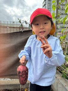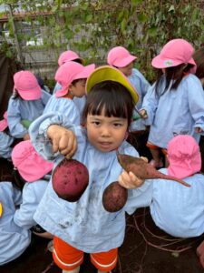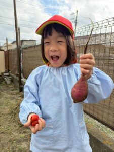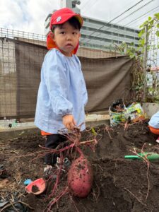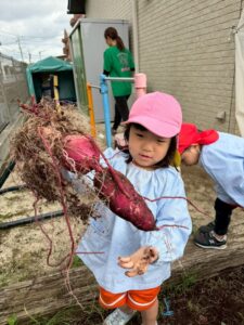 待ちに待った園庭の畑で育てたさつまいもの収穫!