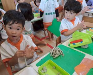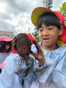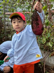 夏に交代でお水をあげたり、観察したりして育てた葉っぱの下に立派なお芋が育っていたことの驚きと喜びを感じた子どもたちでした😊
