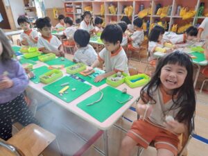 収穫したお芋で、給食の先生がおやつの時間にさつまいもチップスを作ってくださいました。