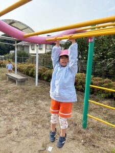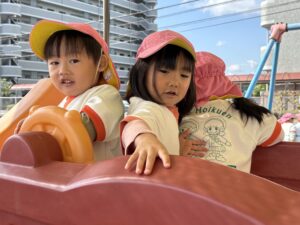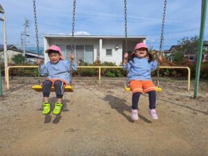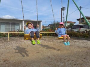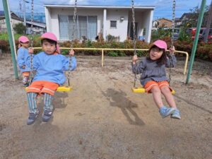 ブランコは、「せんせい、ゆらして〜」と。「もっと高くして」とダメ出しの声も😭