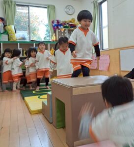 この日はステージを意識して、「ここから前には行かないよ、落ちちゃうからね」と立ち位置の確認をしながらやりました😊